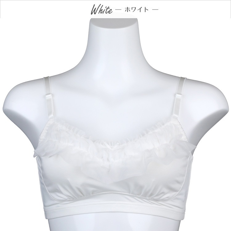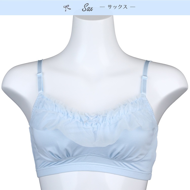 ・ふんわりとした優しさに包まれるような生地感とデザインが特徴的な就寝時での着用をベースに開発されたノンワイヤーブラジャーです 。バスト全体を包み込み、優しくサポート 。カップ上部のゆるやかなカーブを描いたフリルが、ゆるふわ感たっぷりのロマンティックなアイテムです。 |
