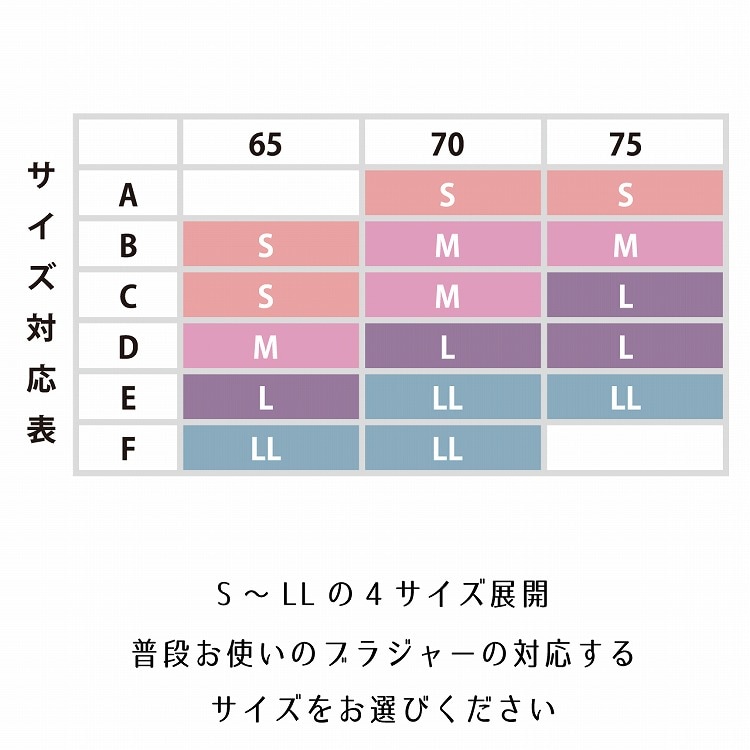 | サイズ | ノンワイヤーモールド脇高ブラジャー:S,M,L,LL |