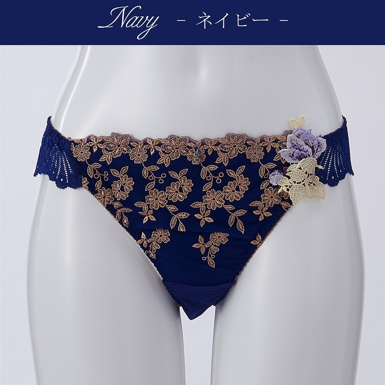 ・シャンソンに『小さな花』という歌があります。"私は小さな花を 他のどんな場所よりもいいところに隠していたの。それは私の心の中の庭"という一節。『小さな花』は愛や喜びを歌う歌詞と美しい旋律で心を打つ名曲です。このコレクションも同じくあなたを心踊る気持ちにさせるでしょう。濃色のベースにゴールドやシルバーの小さい花を立体的に咲かせ、両脇にバラの花のアップリケを咲かせました。金や銀の花が降り注ぐ中、凛としたバラの花が1輪咲くイメージを表現しました。ロマンチックな魅力をまとって、シャンソンのように魅了しましょう。 |