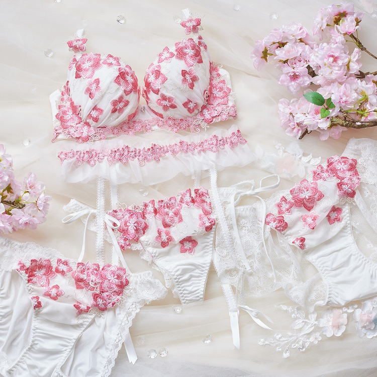 ・-華やかに咲き、優しく舞う- 少しずつ聞こえてくる、春の足音を感じる桜蝶シリーズ。ふんわりとした柔らかな桜をイメージした刺繍レースにカップの両サイドには春の香りに誘われてきた桜の開花を告げる桜蝶、アンダーには春の風に乱れ、美しく舞う桜を飾りました。誰もが心躍る新しい季節を一足早く楽しめるようなシリーズとなっております。 |