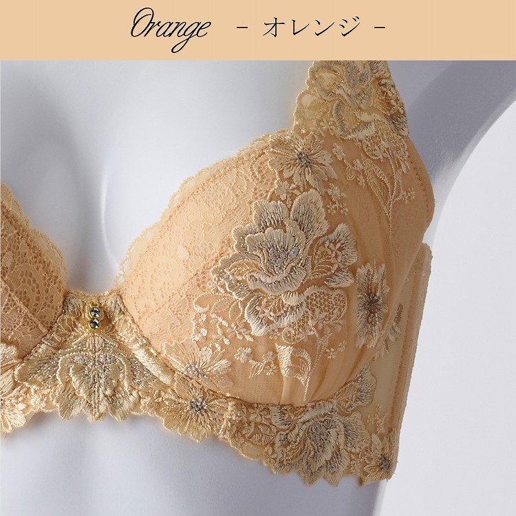 ・ラメ糸を使って浮き立つような花は、光に照らされて輝く真珠をイメージし、表現しました。女神に微笑みかけられるような優しく心地の良いカラーリングとなっております。脇高タイプなので背中は響かずにサイドからしっかり集めて美胸メイクしやすい商品となっております。 ・2列3段階式になっています ・ストラップは付け替え不可 ・パッドはレモン型、取り外し可能なタイプです。 |