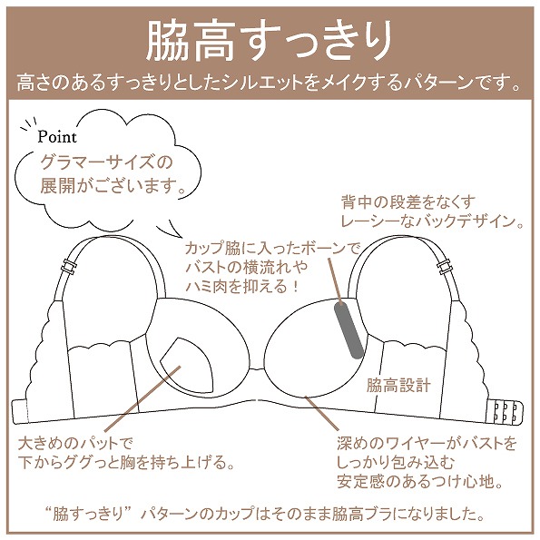 | サイズ | ブラジャー:Bカップ Cカップ Dカップ Eカップ Fカップ B65 B70 B75 C65 C70 C75 D65 D70 D75 D80 E65 E70 E75 E80 F65 F70 F75 F80 |