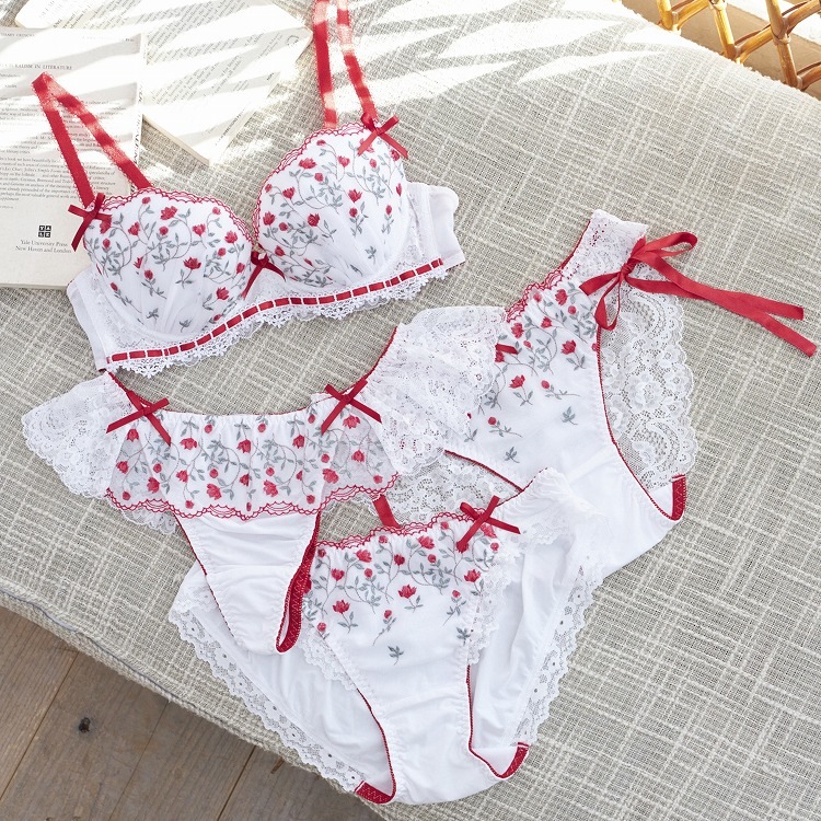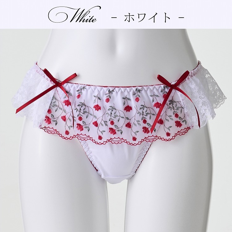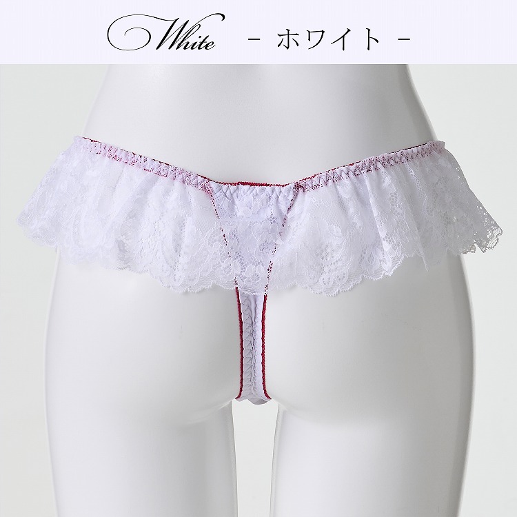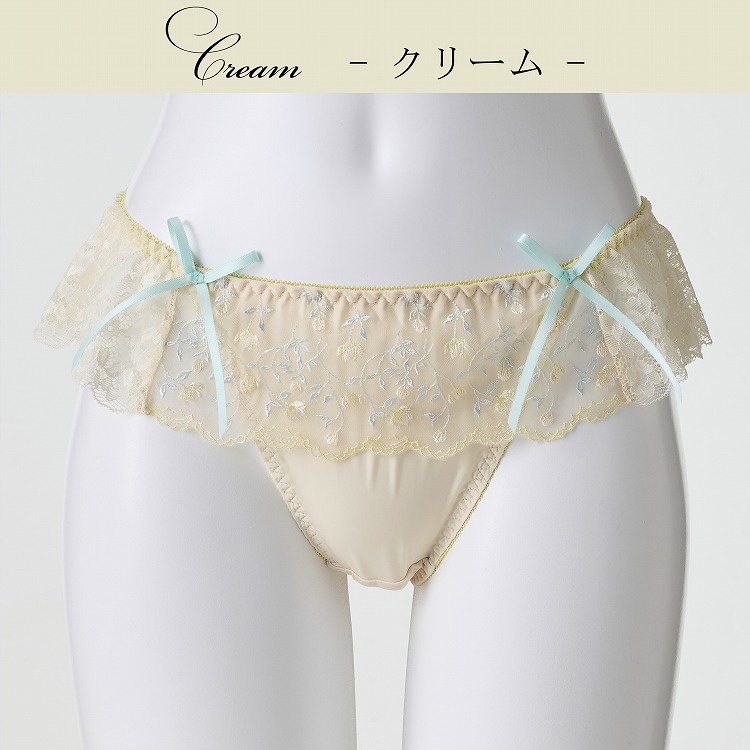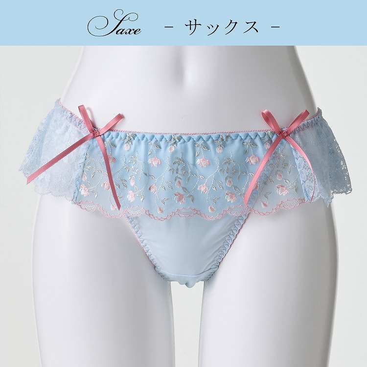 ・レースやフリルの装飾をふんだんに使い、甘く可愛い雰囲気を散りばめたシリーズ。3種のショーツは可愛らしさにちょっぴりセクシーさをプラスし、可愛いだけじゃない仕上がりとなりました。 |