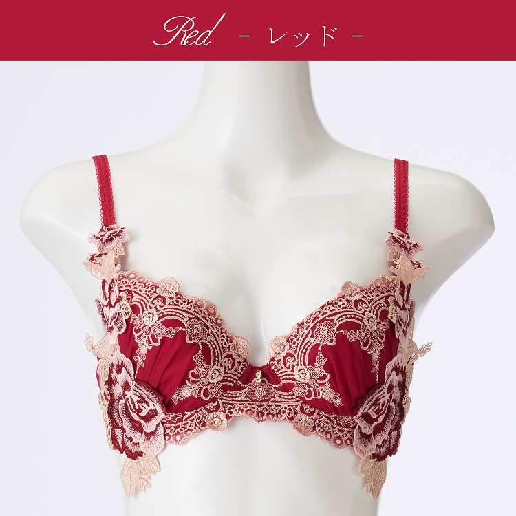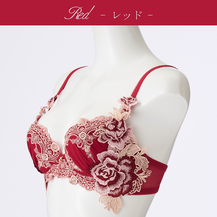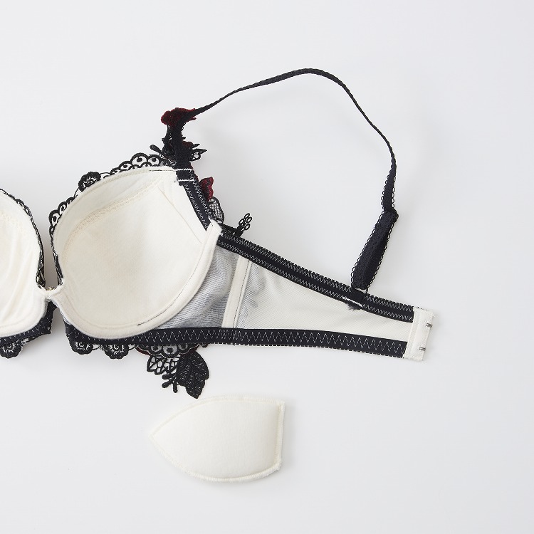 ・こっくりした大人カラーに映える刺繍が目を惹くシリーズ。カラーによって雰囲気が変わるルージュのような煌めきに溢れた商品となっております。 ・2列3段階式になっています ・ストラップは付け替え不可 ・パッドはレモン型、取り外し可能なタイプです。 |