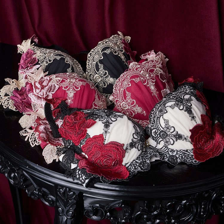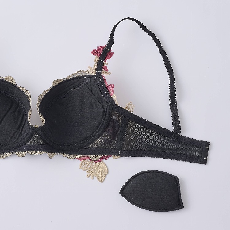 ・こっくりした大人カラーに映える刺繍が目を惹くシリーズ。カラーによって雰囲気が変わるルージュのような煌めきに溢れた商品となっております。好評につき新色ブラックを追加。上品で重厚的なカラーで大人の魅力を引き出してくれます。 ・2列3段階式になっています ・ストラップは付け替え不可 ・パッドはレモン型、取り外し可能なタイプです。 |