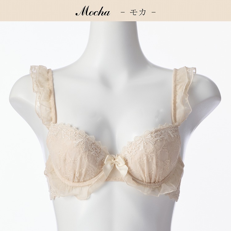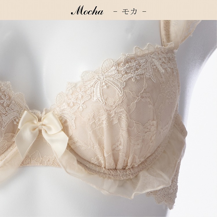 ・リボンとフリルの組み合わせが可愛いシャルロットブラセット。刺繍レースでリボンがたっぷりとデザインされており、大人っぽい雰囲気をほどよく演出してくれます。王道のピンクと少し上品な雰囲気漂うモカとグレーの3色展開です。 ・2列3段階式になっています ・ストラップは付け替え不可 ・パッドはレモン型、取り外し可能なタイプです |