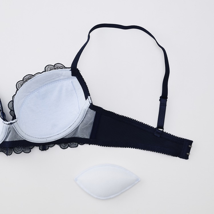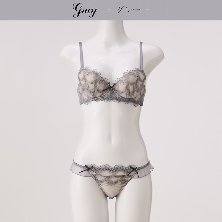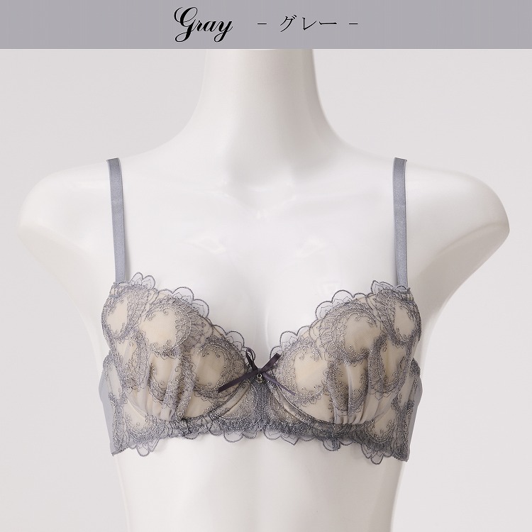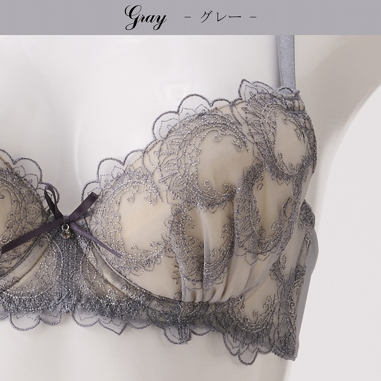 ・真夜中の空に浮かぶ、三日月をモチーフにしたランジェリー。ラメ糸や大粒のチャームがロマンチックな雰囲気を演出します。アンニュイなグレーが一押しカラー。透け感のあるデザインも大人っぽく清潔感のあるシリーズです。 ・2列3段階式になっています ・ストラップは付け替え不可 ・パッドはレモン型、取り外し可能なタイプです |