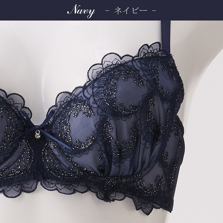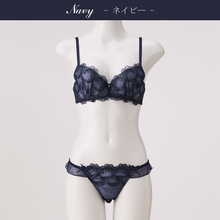 | サイズ | ブラ&ショーツセット B65/M B70/M B75/M C65/M C70/M C75/M D65/M D70/M D75/L E65/M E70/M E75/L E80/L F65/M F70/M F75/L F80/L ※ブラジャーのサイズでショーツサイズが決まっていますのでご注意ください。 |