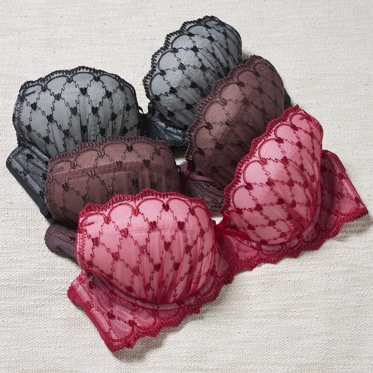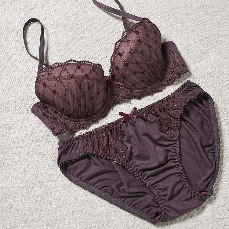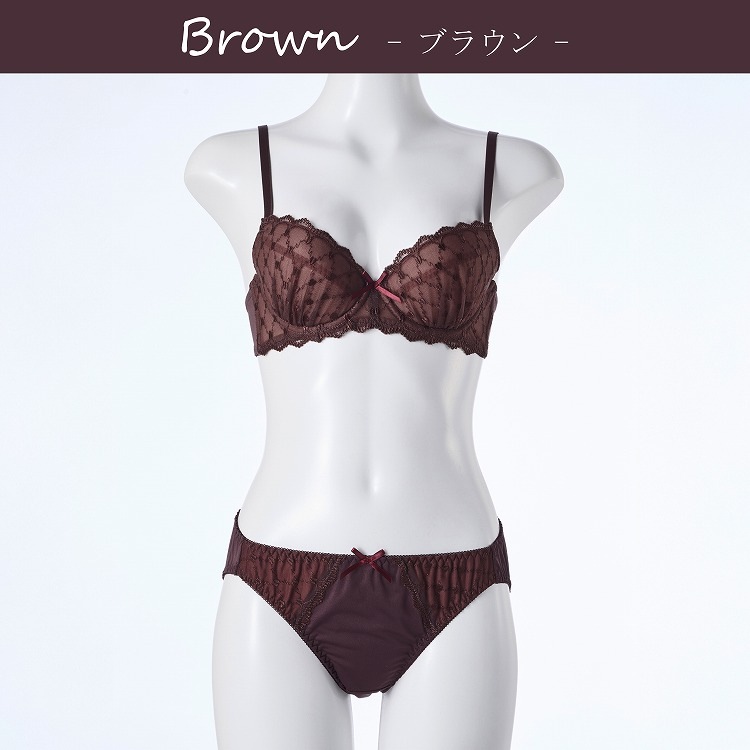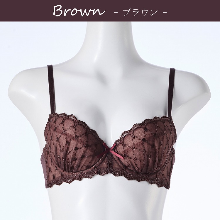 ・まるでチョコレートのような可愛らしい見た目のブラセット。格子柄の刺繍レースがどこかエレガントな雰囲気を漂わせてくれます。 ・2列3段階式になっています ・ストラップは付け替え不可 ・パッドはレモン型、取り外し可能なタイプです。 |