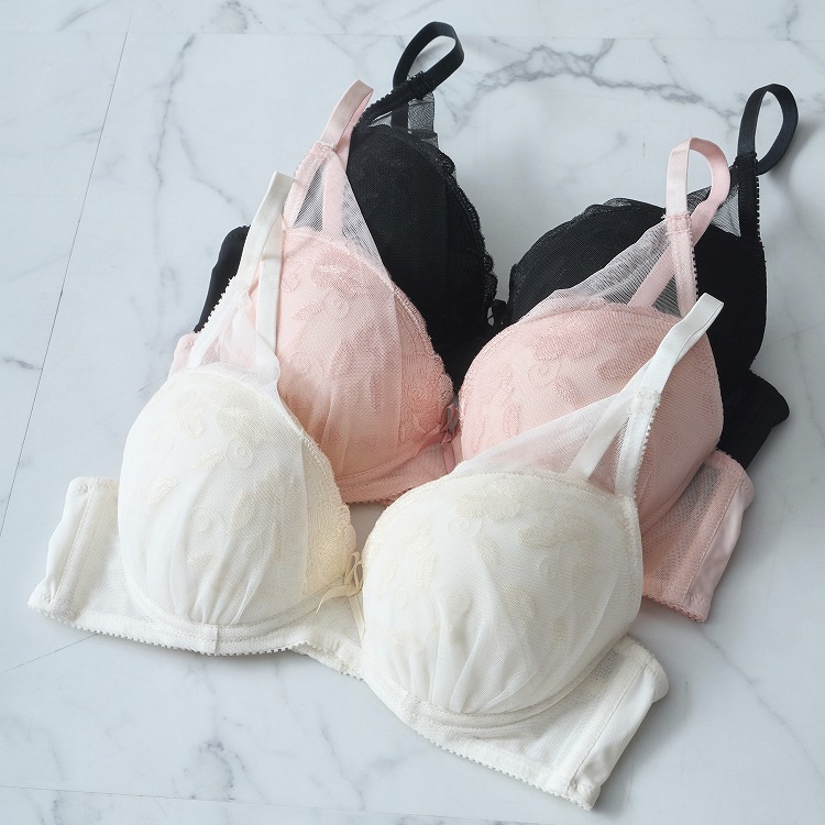 ・花束をイメージして花柄のレースをチュールネットで包み込んだランジェリー。待ち遠しい春を感じさせてくれる一枚です。 ・2列3段階式になっています ・ストラップは付け替え不可 ・パッドは付属しておりません。 |