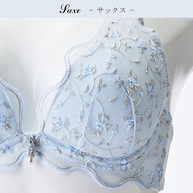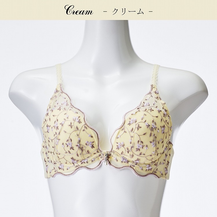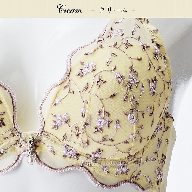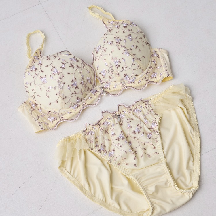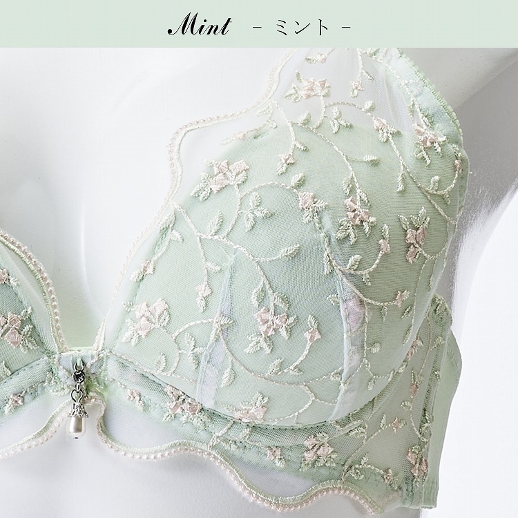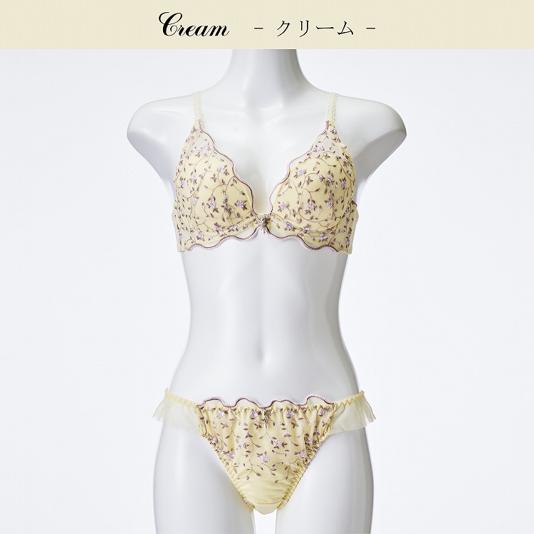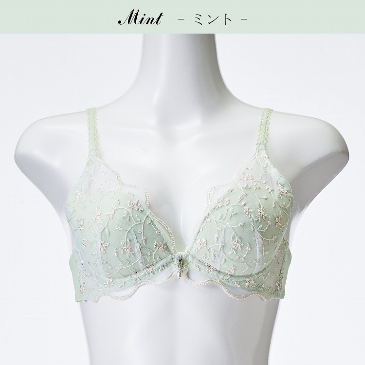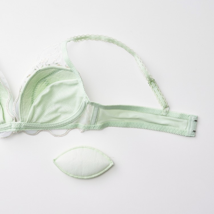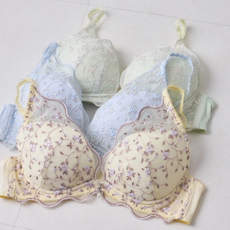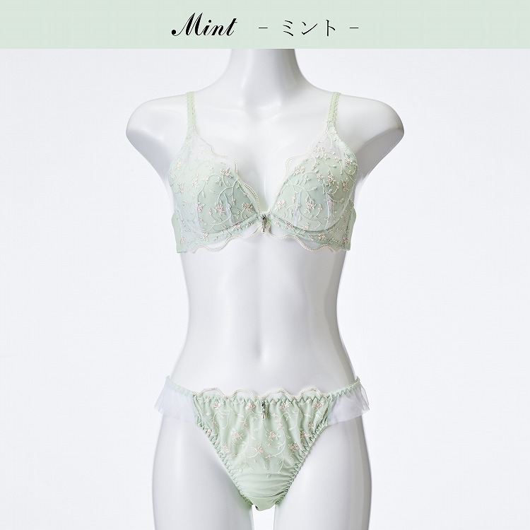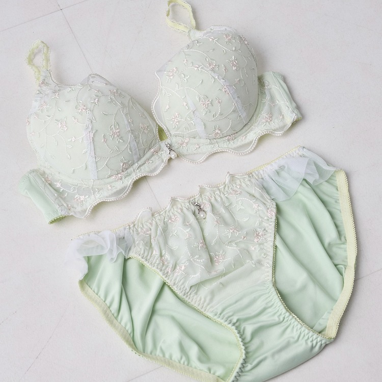 ・春の爽やかな風に揺れる小花をデザインに落とし込んだブラセット。ペールカラーがかわいいシリーズです。 ・2列3段階式になっています ・ストラップは付け替え不可 ・パッドはレモン型、取り外し可能なタイプです |
